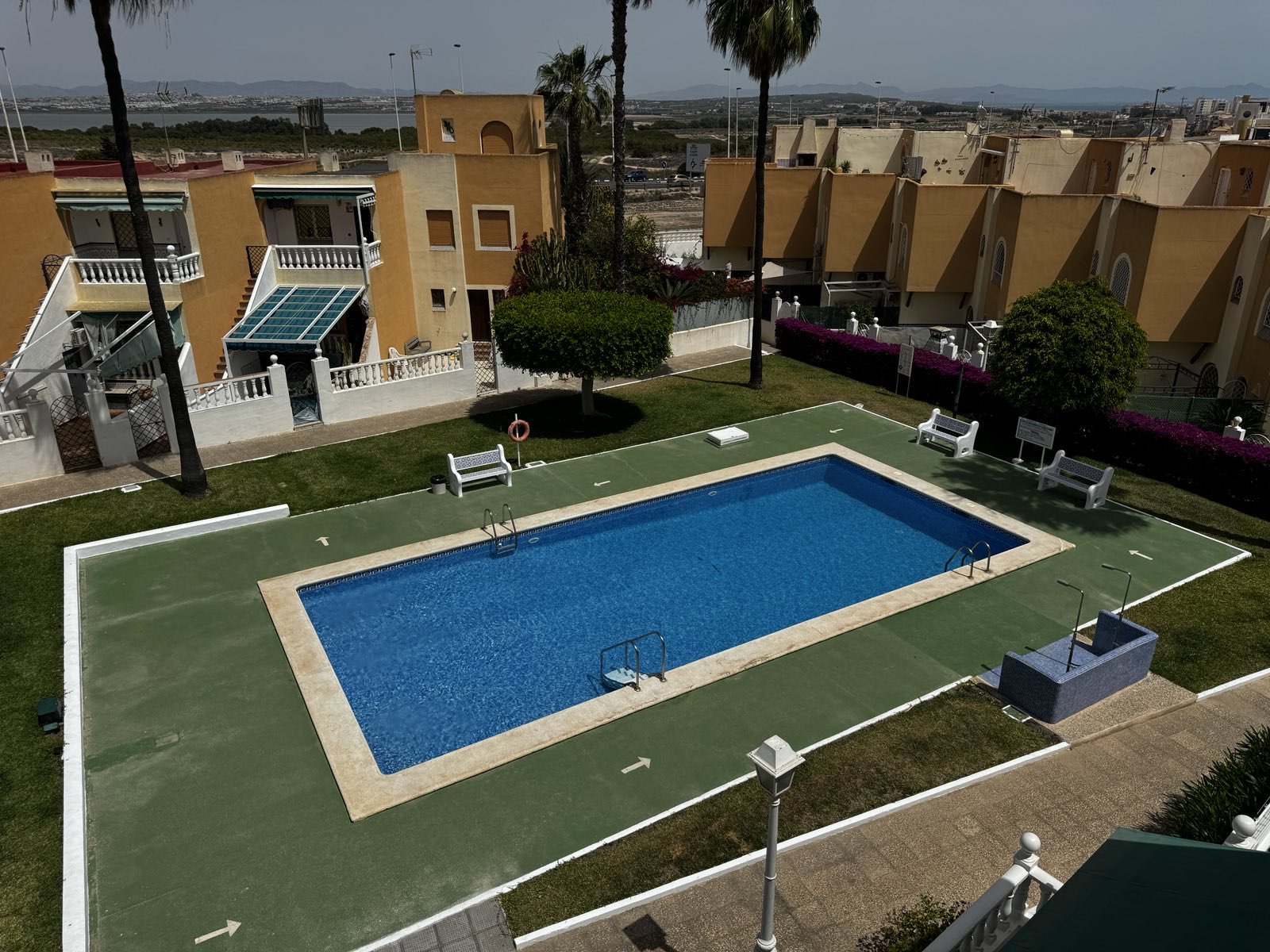 Apartament zlokalizowany jest w niedużej odległości od lotniska w Alicante, z łatwym dojazdem do głównej drogi. Położny w spokojnej dzielnicy, w sąsiedztwie podobnych 2-3 piętrowych apartamentowców i co bardzo istotne z dedykowanym do niego miejscem parkingowym. Okno sypialni i balkon wychodzą na zamknięty wewnętrzny dziedziniec, gdzie znajduje się basen tylko dla mieszkańców tych apartamentowców. Apartament czysty, zadbany, w pełni wyposażony zarówno w sprzęty potrzebne do codziennego życia jak i te które potrzebne są na plaży. Piaszczysta i czysta plaża znajduje się w dzielnicy La Mata, około 15 min pieszo przez piękny park i kawałek dzielnicy nadmorskiej.