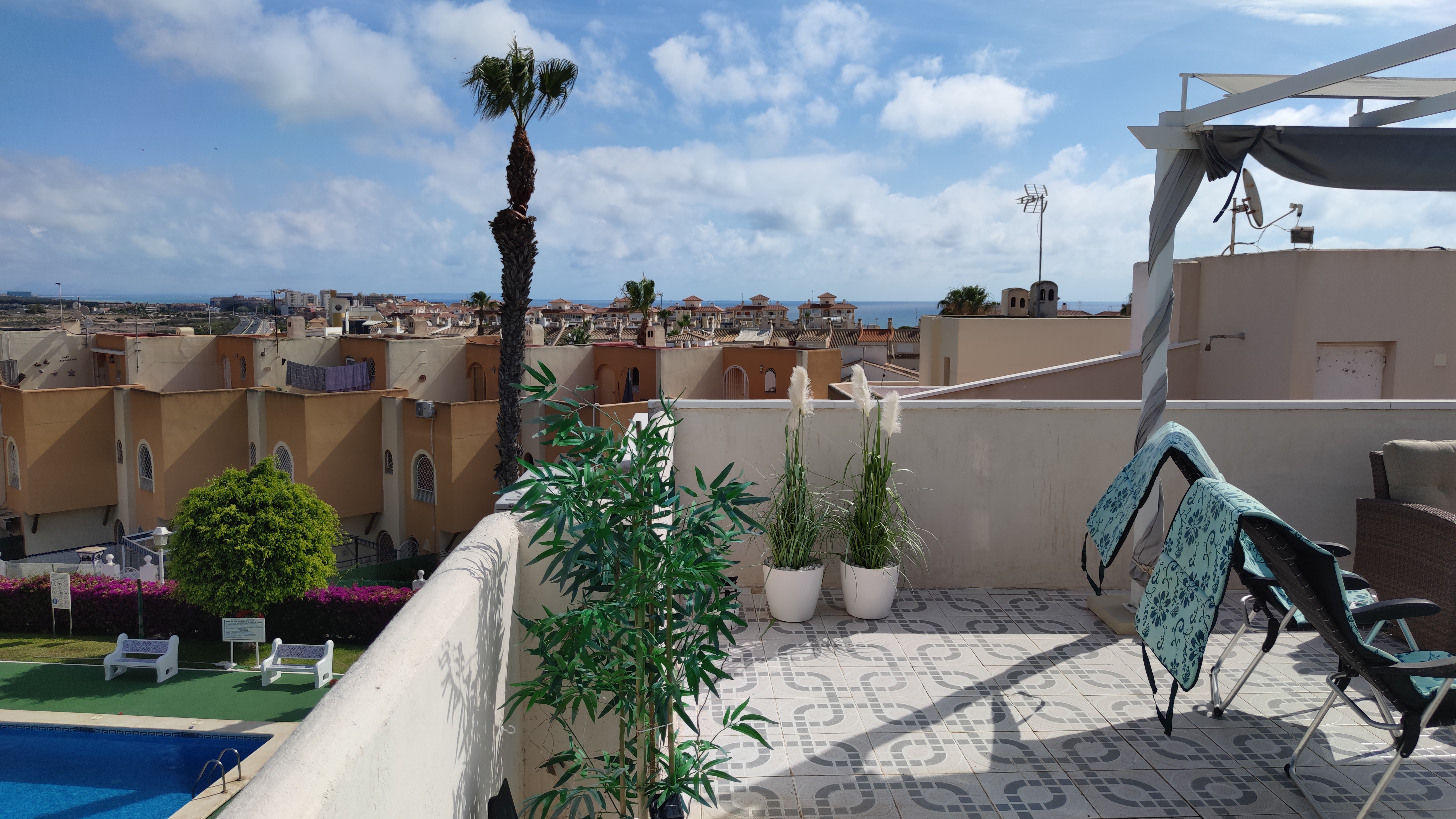 Wisienką na torcie jest duży taras zlokalizowany na dachu, na wysokości 3 piętra ze stołem, krzesłami kanapą i prysznicem z którego rozpościera się cudowny widok na okolice. Wymarzone miejsce na wieczorne dyskusje przy lampce doskonałego hiszpańskiego wina…